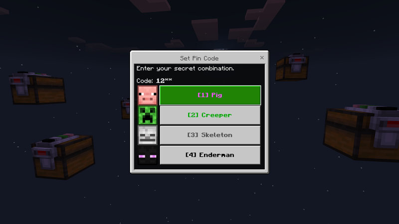 Crea cofres seguros únicos en el juego que sólo tú puedas abrir mediante códigos PIN, claves de tarjeta o contraseñas. Esto es posible en la modificación Cofres de Seguridad para Minecraft, donde se dispone de un gran número de diferentes tipos de contenedores con la máxima protección.