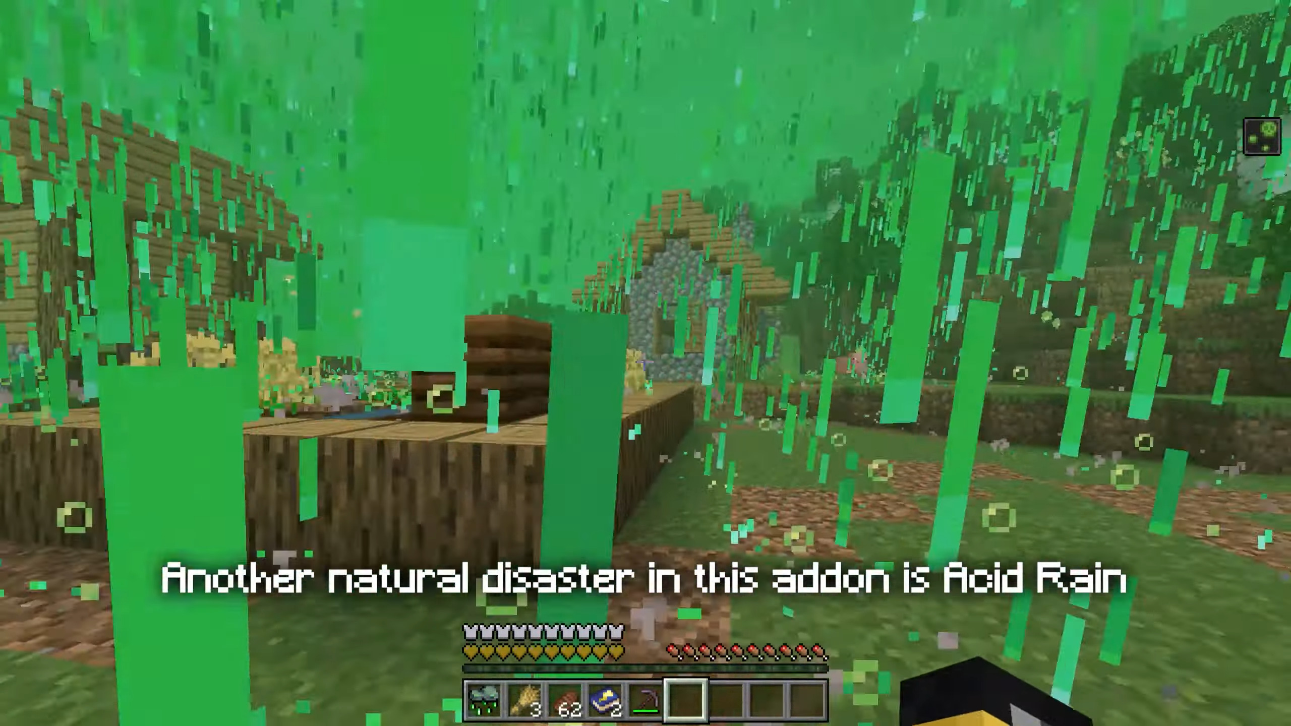 Pueden ser ventiscas, tormentas eléctricas, tormentas de arena, lluvias, tornados o lluvia ácida. Se producen en orden aleatorio, por lo que no se puede predecir qué desastres naturales ocurrirán en el mundo del juego. Este sistema añade más acción al mundo de los cubos y puede pillar desprevenido al jugador en cualquier momento.