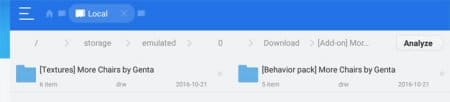 7. Ahora tiene que instalar la textura mod en sí. Volver a la carpeta addon y copiar otra carpeta, puede ser llamado "Comportamiento" o "Mosda". Copia la carpeta y muévela al siguiente directorio: /games /com.mojang /behavior_packs
