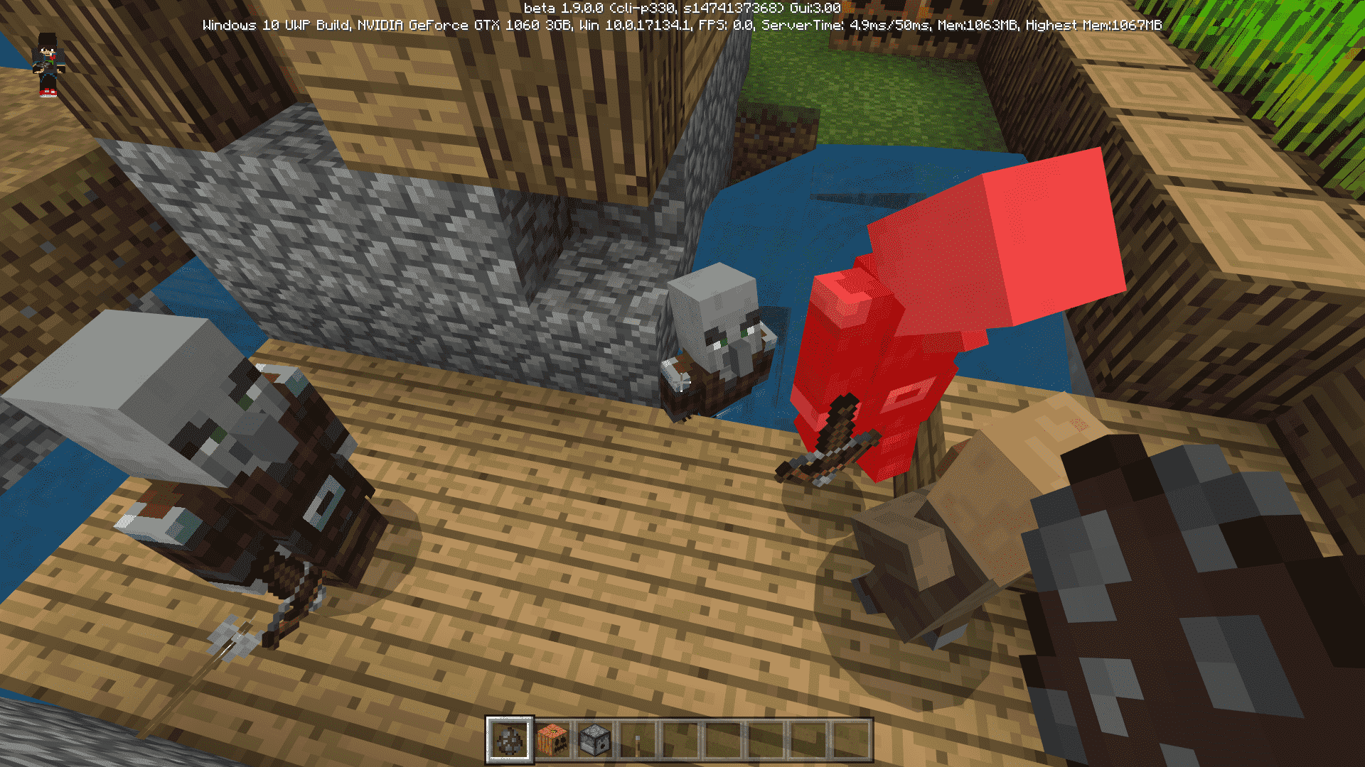 The robbers are weird guys, if you put a pumpkin on them, for some reason it levitates over your head. This is the best bug in MCPE I've ever seen. Hopefully the next update won't have so many bugs and nuances in Mynecraft.