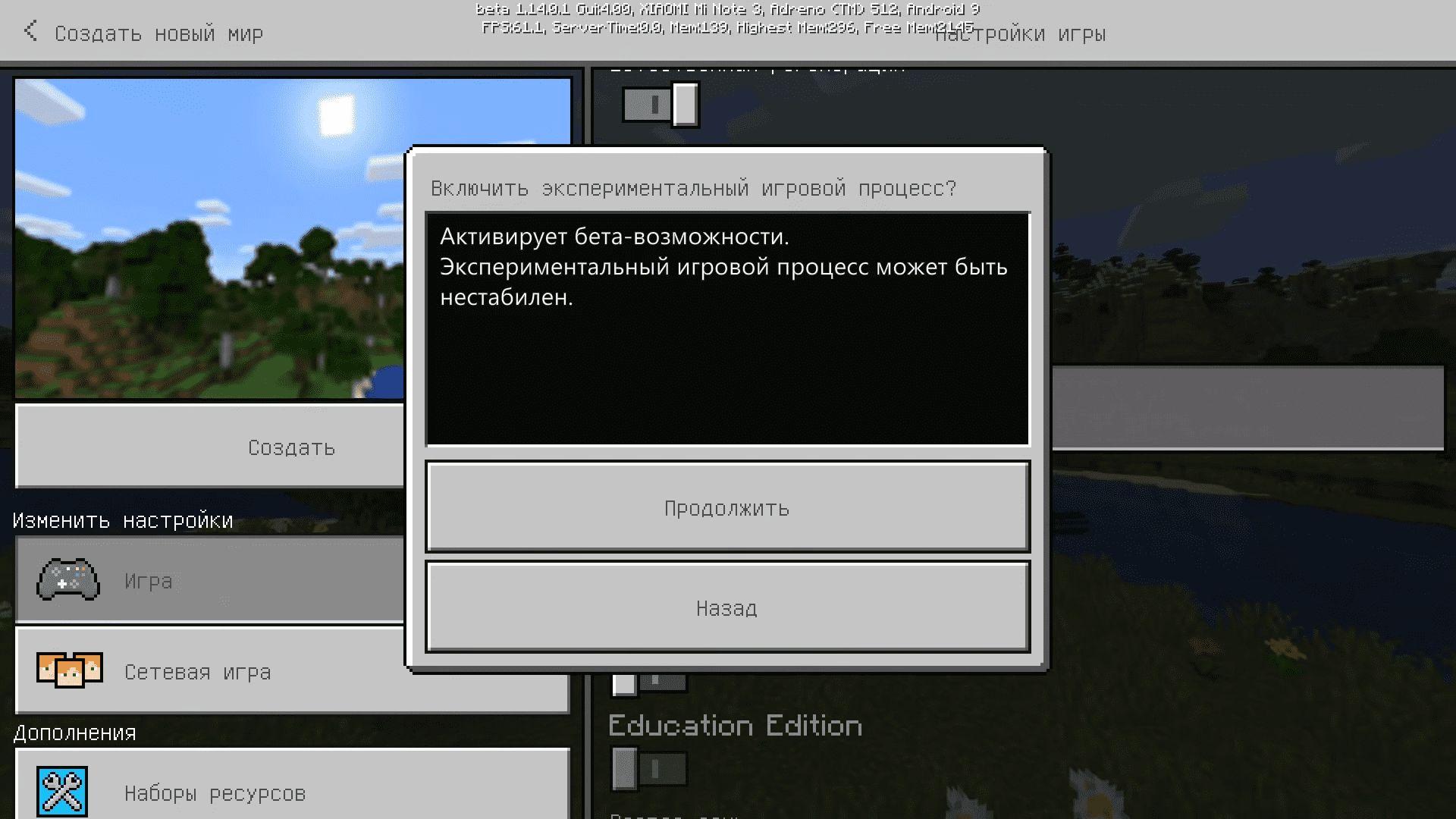 Y también si quieres ver algunas características nuevas en Minecraft, bueno, o el mod que instalaste no funciona, entonces activa el modo experimental en el juego.