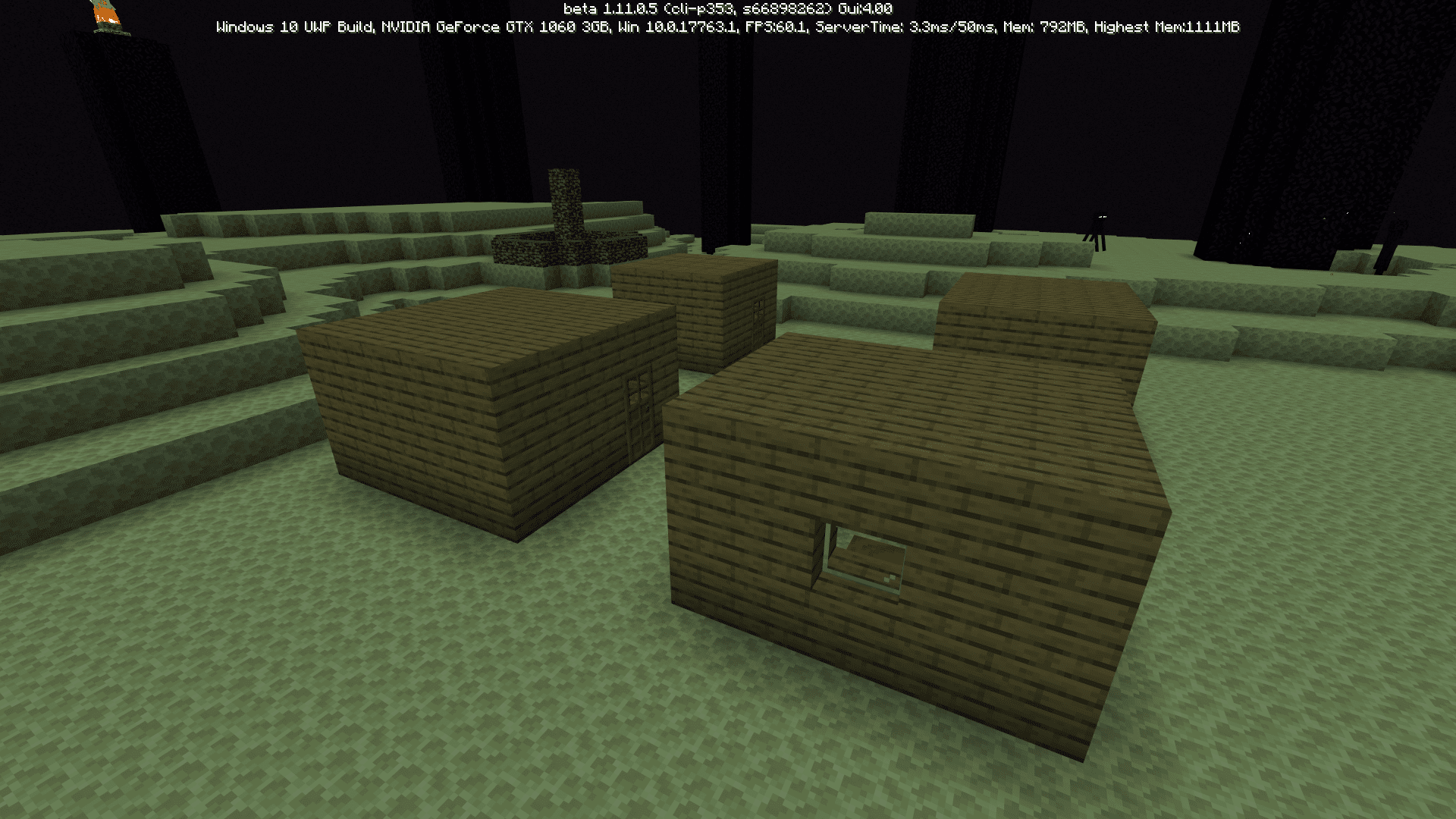 ¡Los habitantes nos demuestran que es de noche en Enderworld! Al fin y al cabo, en cuanto aparezcan los habitantes, correrán a sus chozas y se irán a dormir.
