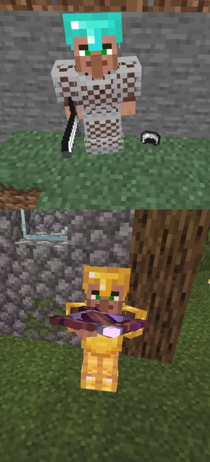 Mod Village Guards hará que sea para que aldea en Minecraft PE (Bedrock) estará protegido no sólo golem, sino también a otros residentes con armas: espadas, ballestas. Ellos caminarán alrededor de la aldea y patrullarla.