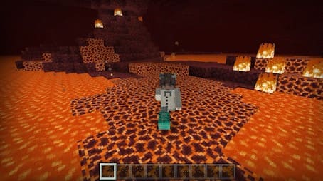 Hay 3 encantamientos disponibles. El primero acelera tu nado en el agua; El segundo te permite caminar sobre lava y así aparece bloque de magma en lugar de lava; El tercero es caída suave, cuando caes desde una altura rebotarás.