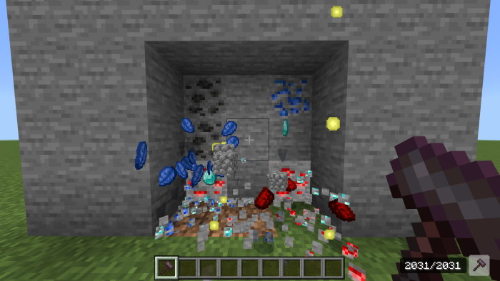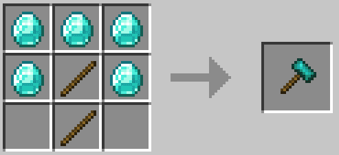 Casi todos los tipos de martillos se añaden a partir de materiales estándar: oro, hierro, diamantes, neserita y muchos otros. En consecuencia, cuanto mejor sea el material - el más fuerte de la herramienta y más posibilidades que tiene. Y también el número de bloques rotos aumenta el "combo" total. Cuantos más bloques rompas, más aumentará tu velocidad de minería. Todas las herramientas pueden encantarse.
