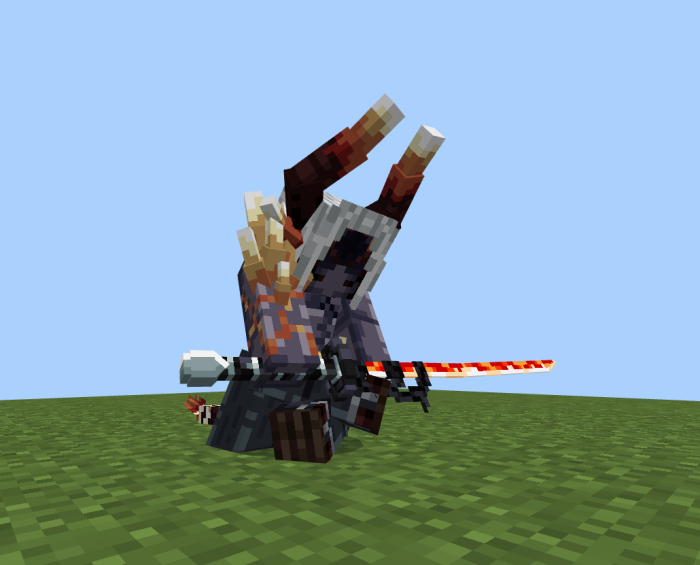 Boss Demon King add-on para Minecraft añade un peligroso mob (jefe) en el juego, que posee armas serias: espada, daga, katana. Para luchar con semejante criatura, tendrás que esforzarte al máximo y "reunir tu voluntad en un puño", ya que se trata de un mob muy fuerte.
