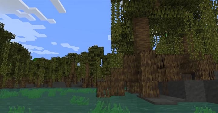¡Dormirás en el tejado de la mansión! Eso es súper raro. E introduciendo el comando con las coordenadas /tp -1654 75 3019 en el chat - serás teletransportado a los manglares, justo en el pantano. Y podrás apreciar todos los encantos de la actualización salvaje.