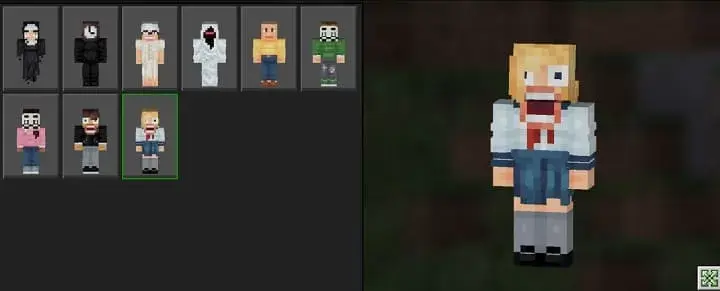 Cada una de las pieles en el Horror a las 3:00 AM Skin Pack tiene su propia textura única, que le permite crear una impresión más realista y llevar a sus personajes a la vida. Esto te ayudará a crear un aspecto único para tu personaje y enfatizar su personalidad en el mundo de Minecraft PE (Bedrock).