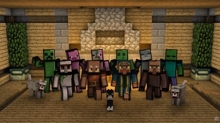 Marvi's Mobs 3D Skin Pack incluye muchos mobs diferentes, incluyendo zombies, esqueletos, enredaderas, arañas, esqueletos de fuego, golems de hierro y muchos más. Cada uno de estos mobs tiene su propio skin 3D único que puedes aplicar a tu personaje en Minecraft PE (Bedrock).