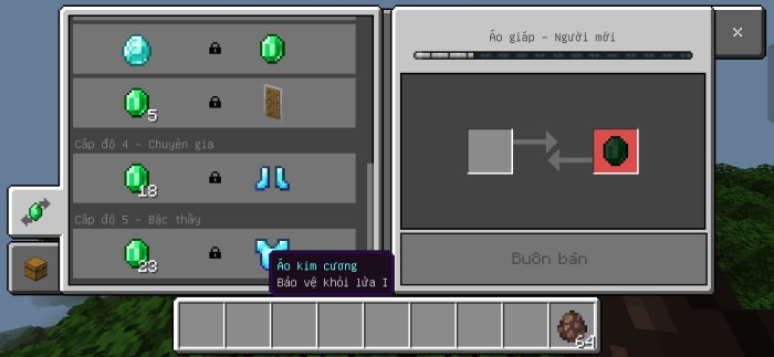 Si te gustan las novedades variadas, te sugerimos que prestes atención al complemento MCPE vietnamita para Minecraft. La principal característica de su nueva aventura es que ahora podrás utilizar la función de vista previa del objeto mientras comercias con los aldeanos.